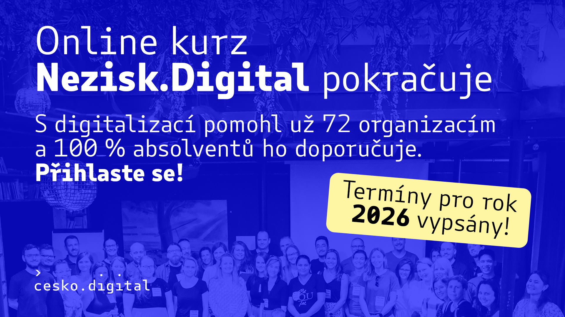 Kurz pořádá Česko.Digital. Registrované sociální služby mohou (pouze od 1.1. do 26. 1.) žádat u Nadace ČEZ o grant, který plně pokryje kurzovné i další náklady na jejich rozvoj až do výše 200 000 Kč.